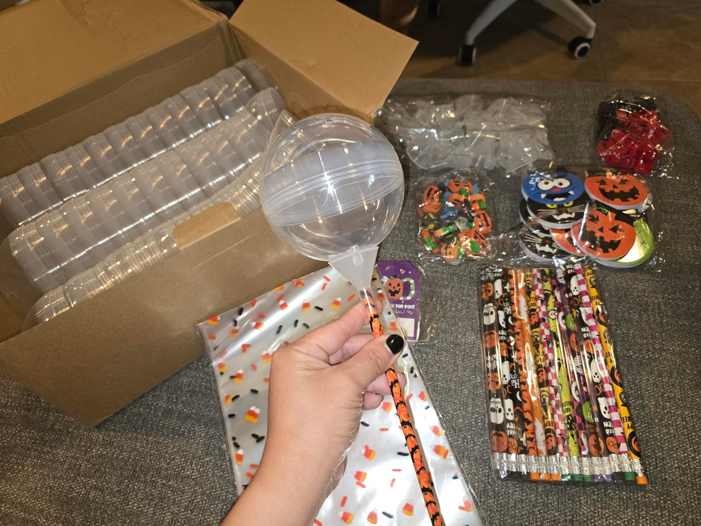 No mess on the porch this year. The lollipop shell is fun and the goodies last longer than candy.