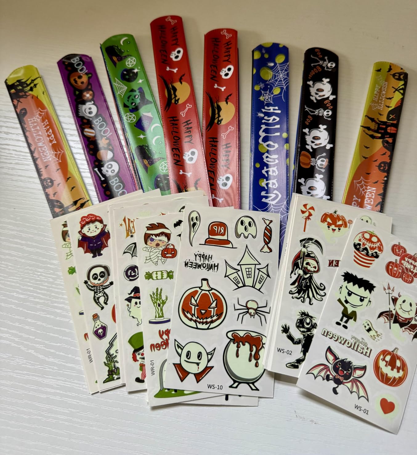 Kids thought they were candy at first, then loved the stamp and slap bracelt. Individually wrapped made passing them out a breeze.